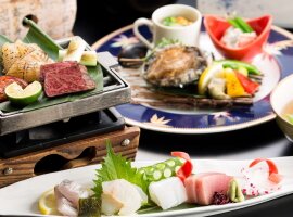 山海の饗宴!春の日本海創作会席 ◆夕食部屋◆春のゆるり旅♪<活鮑ステーキ&鳥取ブランド和牛>創作会席で極上の味わい♪